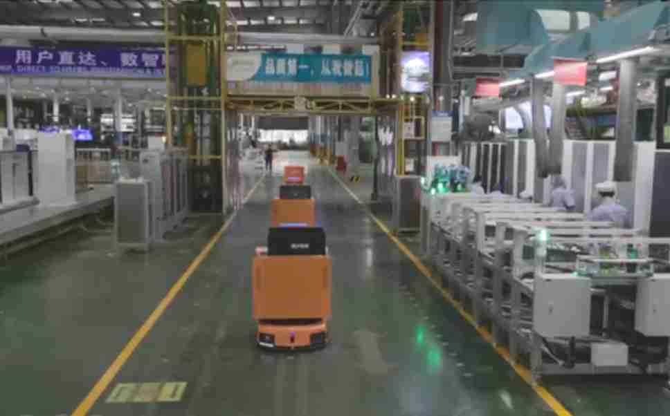 为车载冰箱物流配送打造的智能解决方案,,,包含产中物流通过潜伏举升AMR搬运至线边,,产后成品物流智能仓储,,流程包含产中物流智能齐套入库,,线边安灯叫料AMR智能配送至线边,,成品入库、、、出库,,通过无人堆高车机器人,,,,智能仓储管理替代人工作业管理,,实现更高存储、、更高效率、、、、更具柔性化的解决方案。。